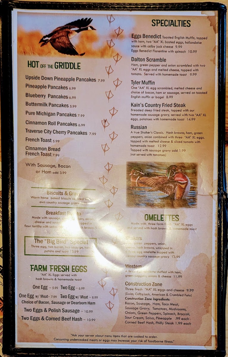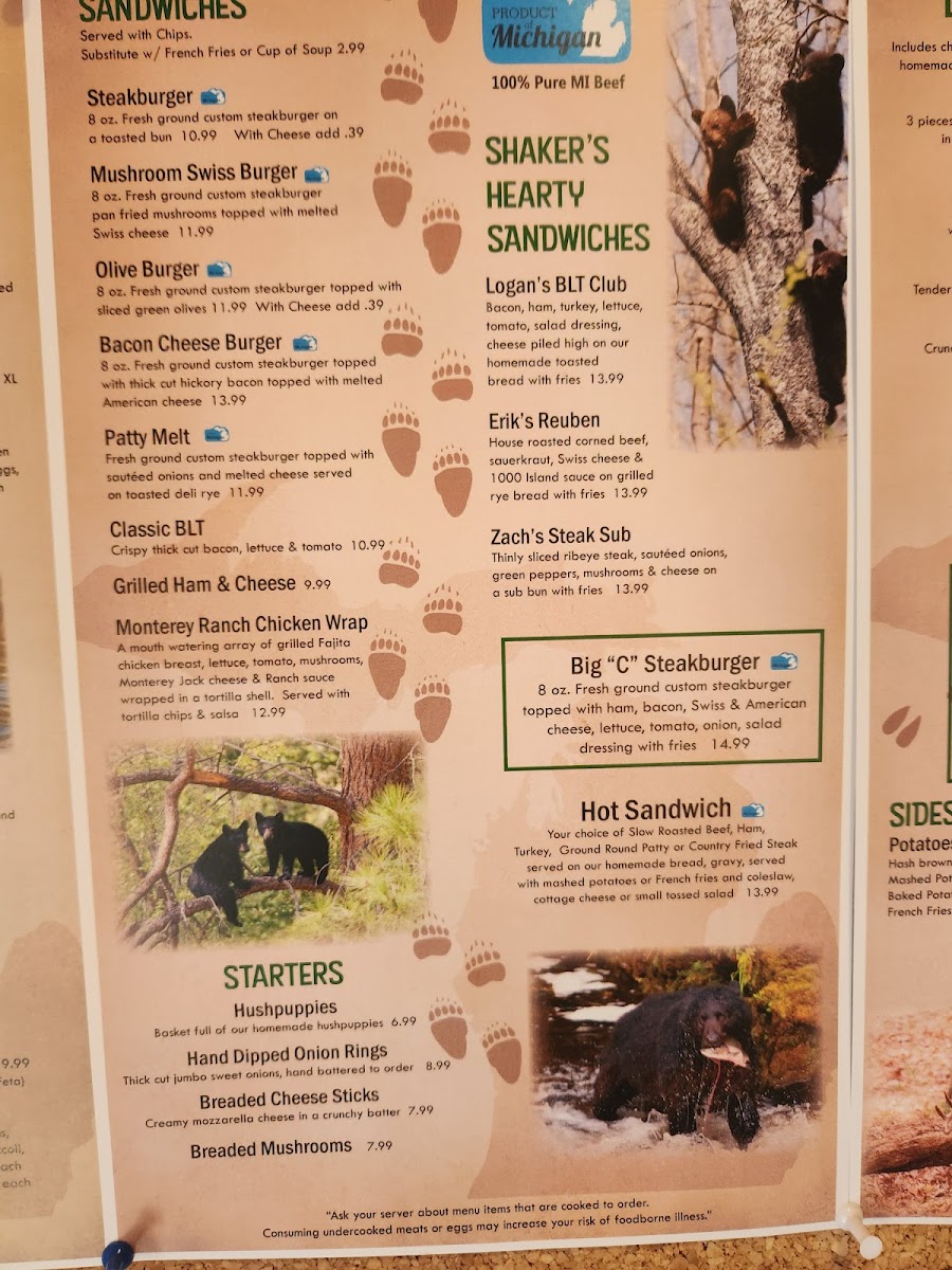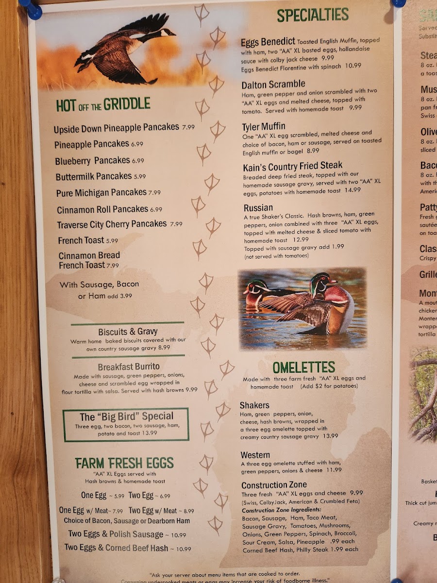 Shaker’s Restaurant in Prudenville serves a hearty, satisfying menu that captures the essence of classic American comfort food. Their omelettes—such as the signature Shakers, Western, and Construction Zone—are crafted with fresh ingredients and cooked to perfection, satisfying even the most discerning breakfast lovers. The breakfast staples, including homemade sausage gravy, cinnamon swirl pancakes, and golden, crispy hashbrowns, are consistently praised by regulars for their authentic taste and quality.